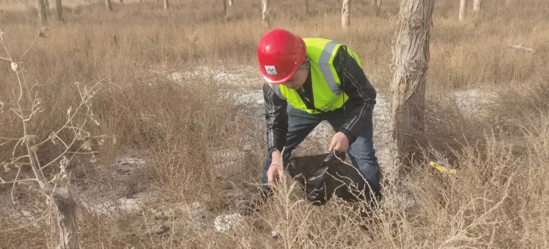 在党旗和团旗的指引下,大家来到了图木舒克市军垦文化公园,深入林间小道,清捡垃圾,美化环境。志愿者们手拿垃圾袋和工具,弯下腰伸出手,不怕脏不怕累,亲力亲为拾捡草坪和小道上的烟头、果皮、食品袋等垃圾。